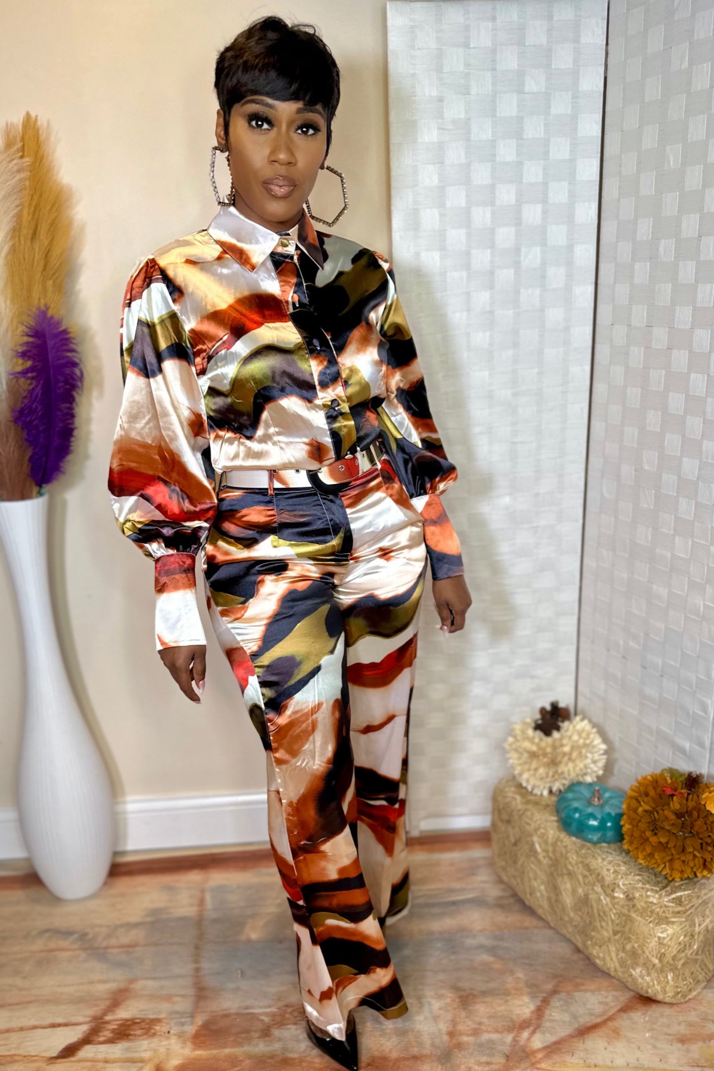Get vacation ready in this fun tie dye print set. A super comfortable wide leg fit and high waistline.