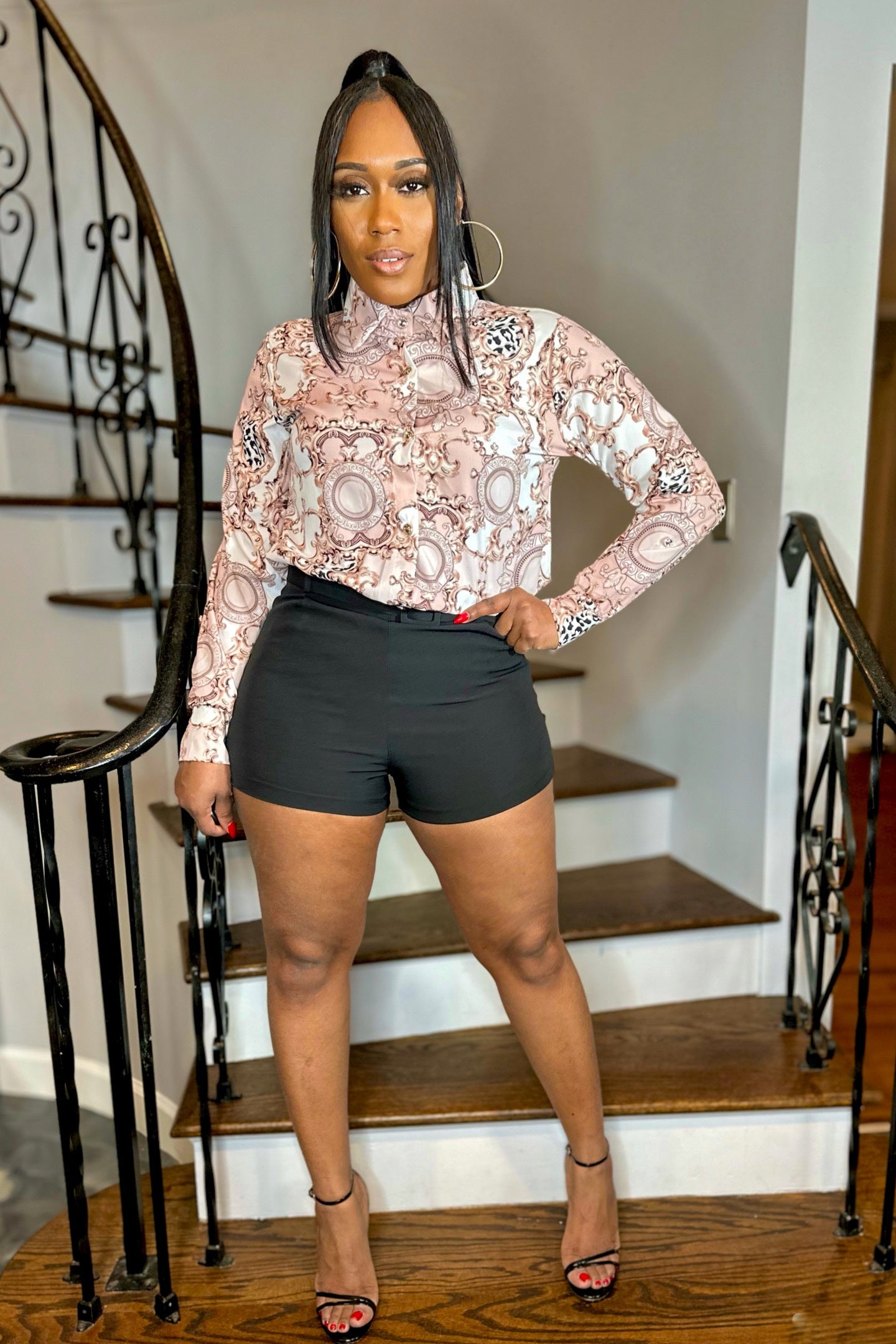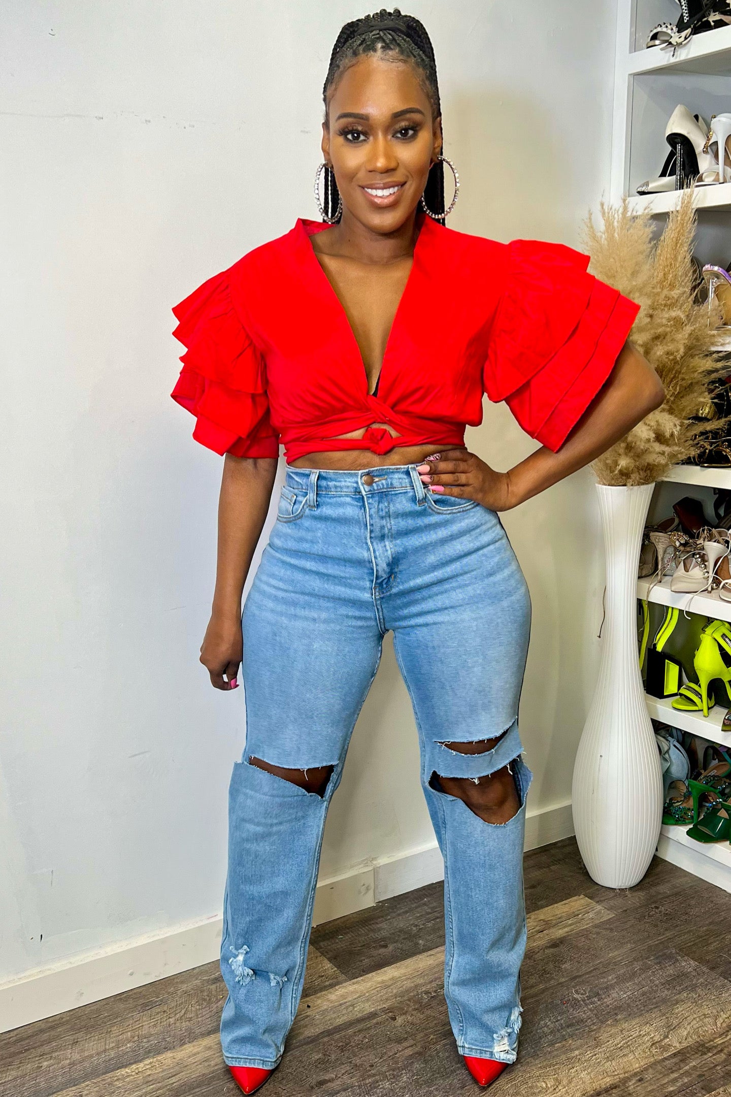 This top is perfect for sunny days. It has a cropped lace corset style that gives a secure fit and the pretty long sleeves are shirred to the wrist and elbows