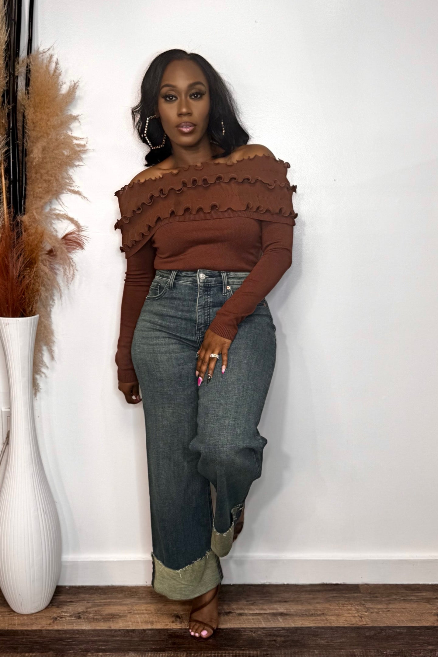 Spice up your one piece life with this on the shoulder off the shoulder one piece. Perfect transition piece from sandals to thigh highs.